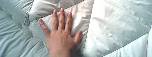 「眠むの木」オリジナルのHB-1敷布団の表面、お買い上げいただいて半年と少し…まだ充分にご使用いただけるボリュームがある敷布団。見た感じ何も問題はなさそうにみえますが、、